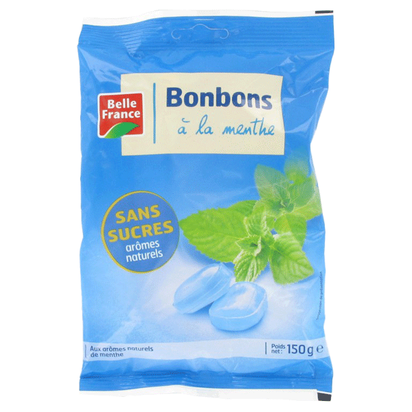 Bonbons à la menthe sans sucre, pour une haleine fraîche.