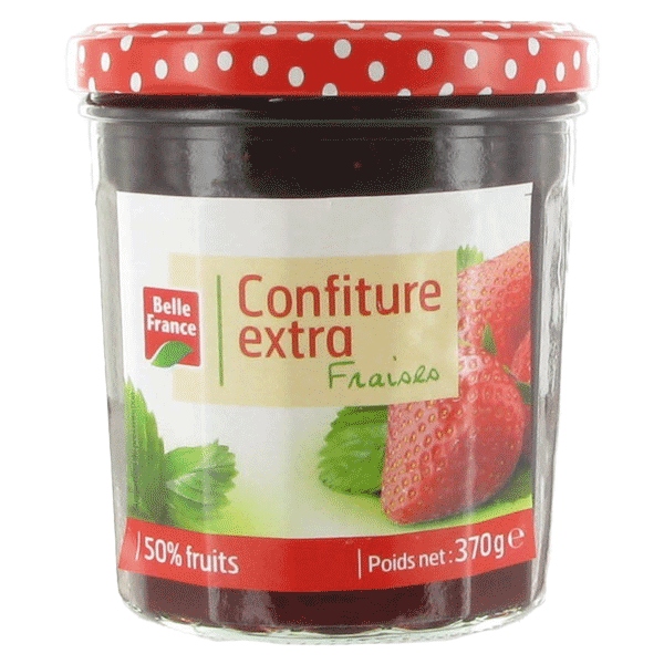 Confiture riche en fraises, parfaite sur tartines.